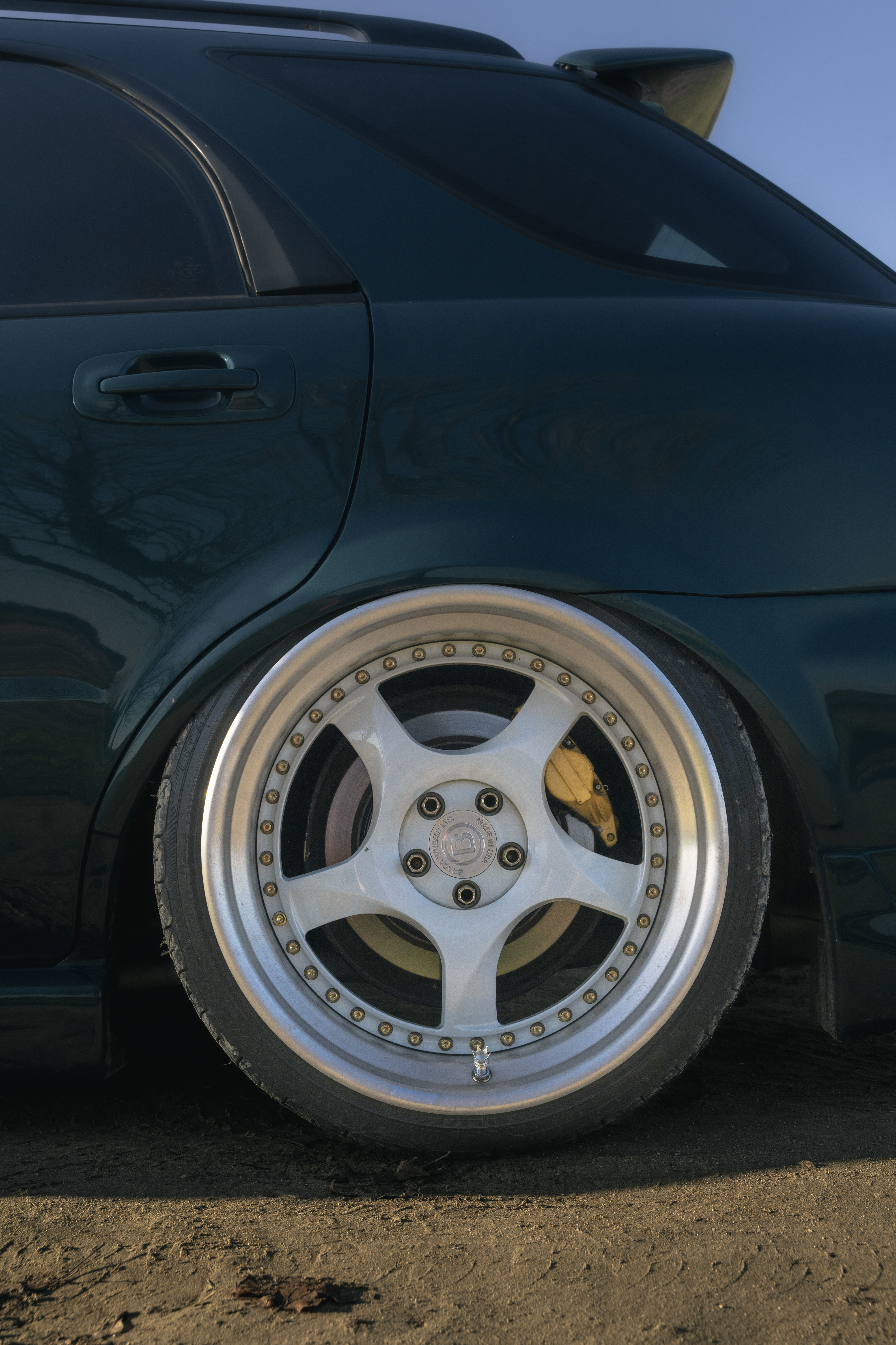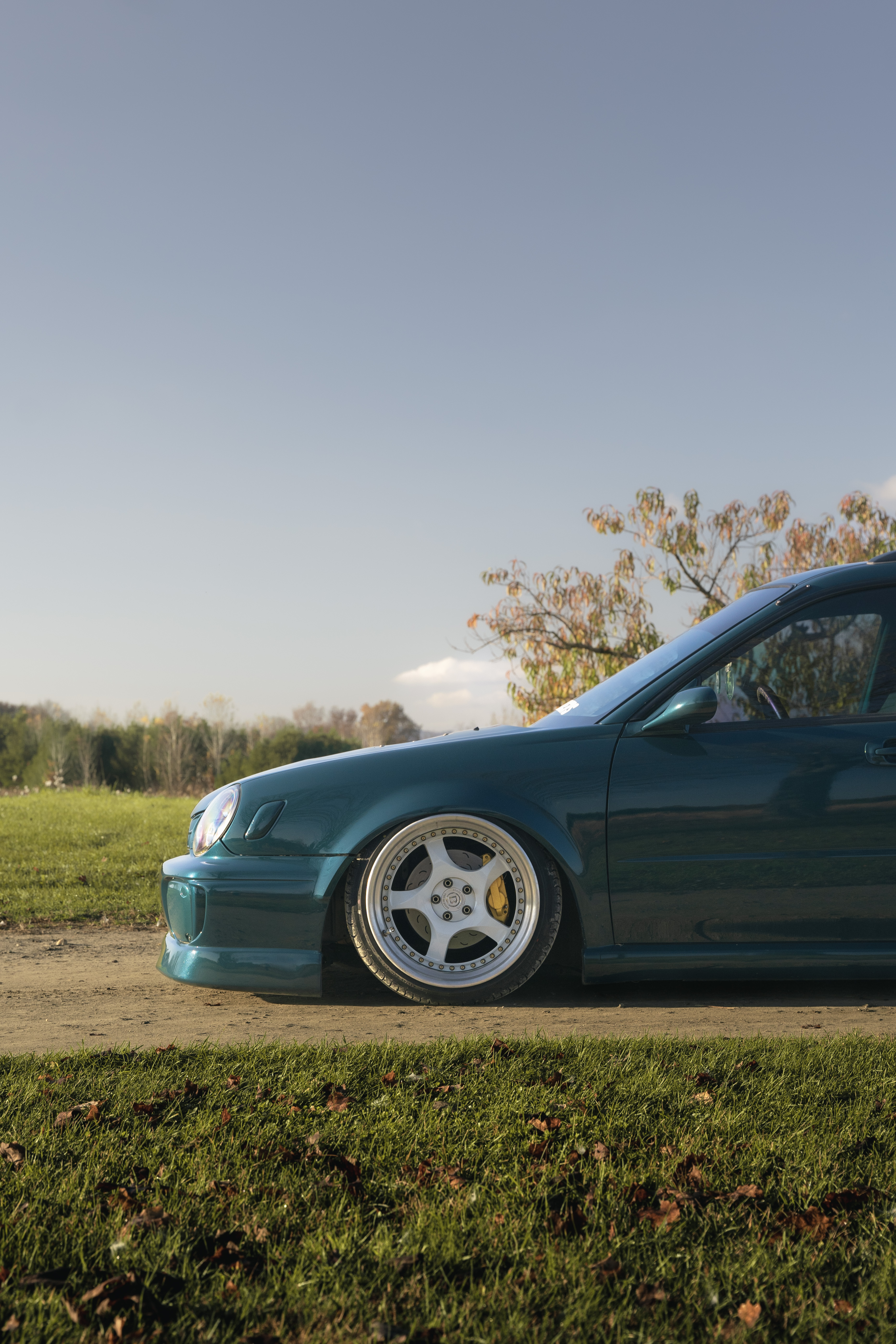 Every high school kid wants a damn WRX, Tanner included. In this case, a 2002 Sonic Yellow wagon. Over the next couple of years, the build progressed with some simple, but effective mods. Front lip, air suspension, over fenders, and Work wheels. Not a bad way to pull up to school before first period.