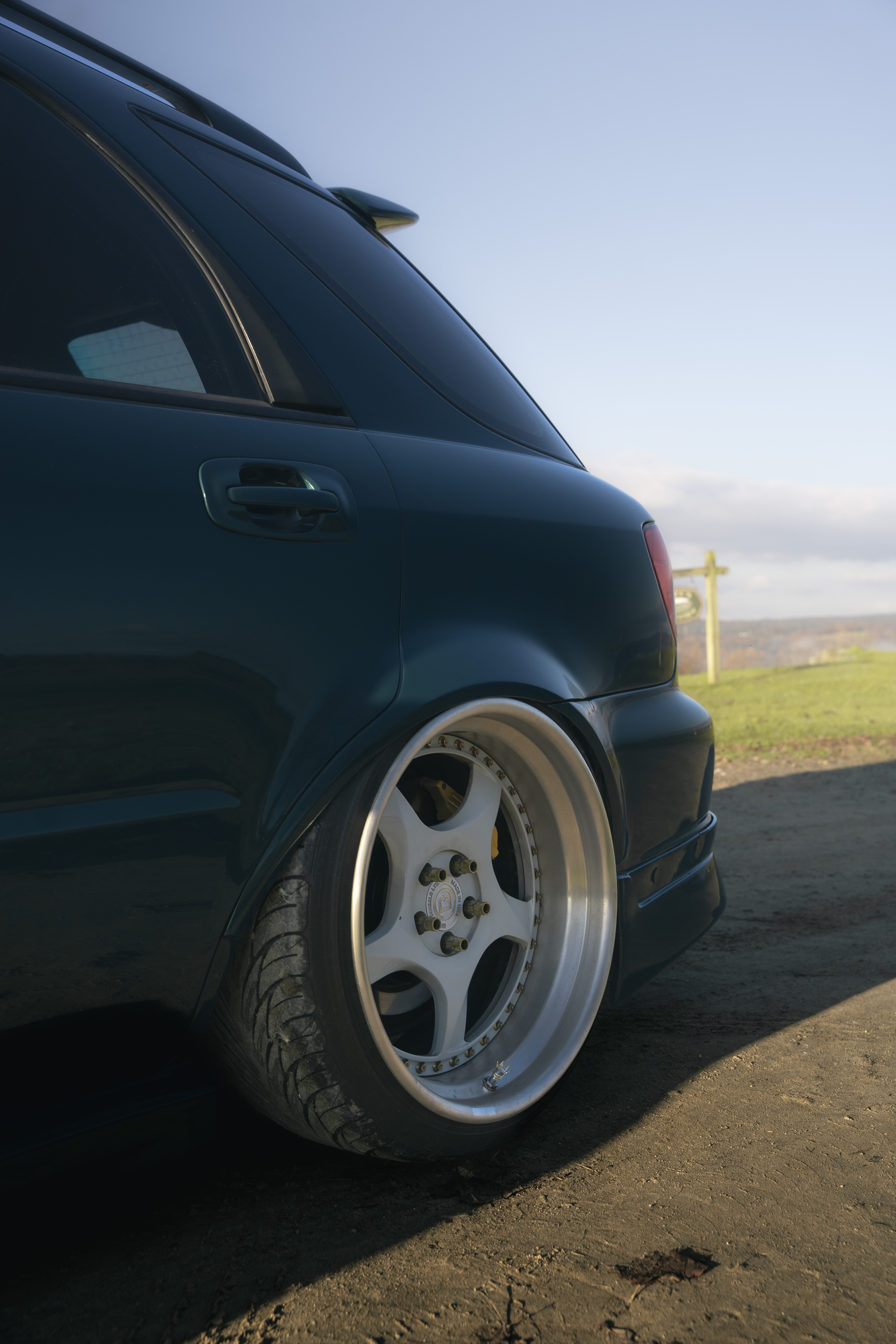 Over the next 2 years Tanner spent his evenings building the car with the the guidance of YouTube tutorials, friends knowledge, and online forums. And let’s give the man his props – most of us would absolutely butcher a build if we followed that path. He sourced some additional JDM parts to compliment the tasteful bits that we’re included in the cars initial purchase and took it to the next level with welded and molded fender flares from Ulterior Motive and Bradaforged BR5 wheels tucked underneath. You VW kids might recognize the paint color from the MK7 GTI. Great Falls Green Metallic. The vision was complete. That “take a step back and enjoy your work” moment. Proud of his efforts, Tanner started hitting events and shows with the car, taking home some hardware in the process. But, not long after, he couldn’t help but feel bored. He wasn’t done.