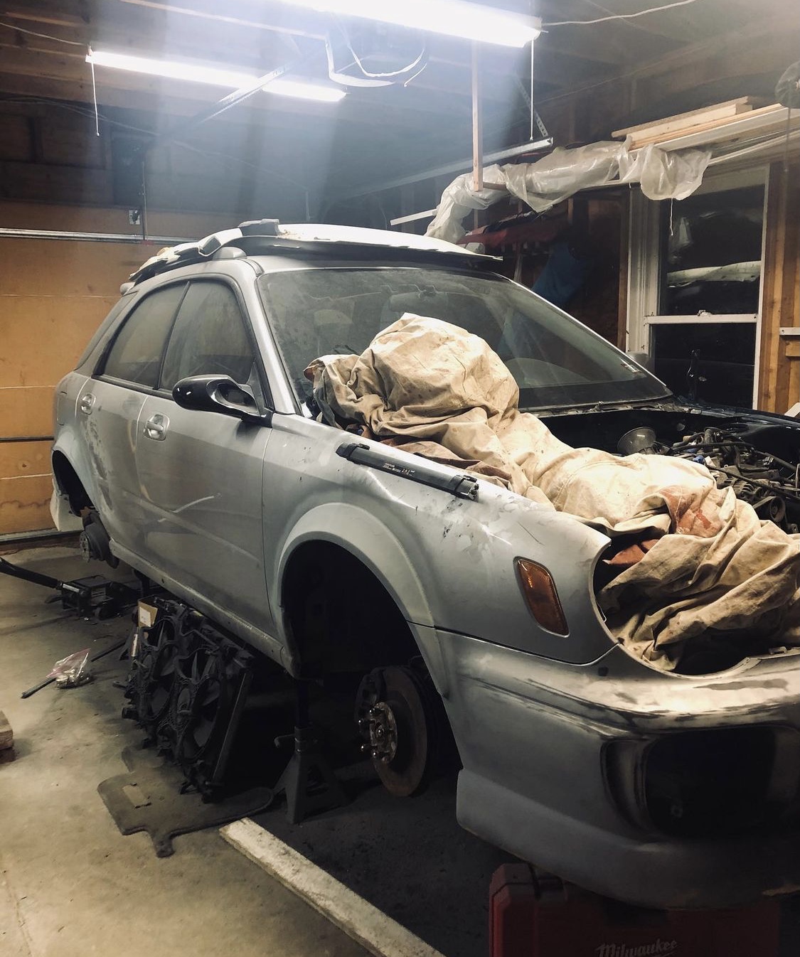 The end of an era. It was time for the next build. Most people go for something completely different, but Subaru kids do Subaru things, and a friend of his had a 2002 WRX Wagon. Yeah, another one. Typical Vermont things. Except this one was originally a California car. 55k miles, Blitz goodies, no rust, EJ207. The perfect platform for Version 2. Time to get to work. With a pile of saved parts from the first car, a couple sketchy Harbor Freight tools, and a blessing from his parents to keep the car in their garage, Tanner set out to complete the build he initially envisioned. “You can do anything you put your mind to” – Dad.